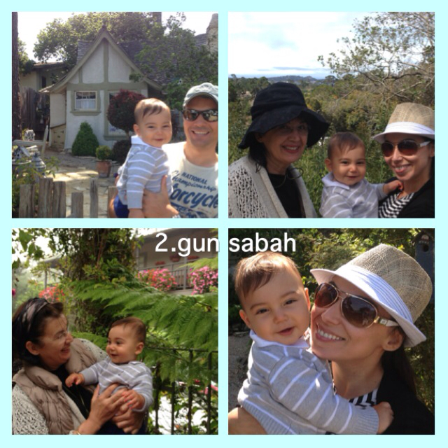 Ilk gun Carmel'e gitmek uzere yola ciktigimizda yola cikis saatini Ozan'in ogle uykusu zamanina denk getirdik ki yaklasik 1 saat 45 dk surecek olan araba yolculugunda cok fazla mizirdanmasin, yol cabuk bitsin diye. Yola ciktiktan 10 dk sonra Ozan'cik uykuya daldi ve otele vardigimiz zaman uyandi. Tugrul ve ben arabanin on koltuklarinda zaman cabuk gecsin diye zeka oyunlari ile kafa yorarken ( iki muhendis kari kocanin kum saatli zeka oyununu cozmesi 1.5 saat aldi, yaslaniyor muyuz ne) anneanne de arkada Ozan'la beraber oturuyordu. Otel'e varip yerlestikten sonra yuruyerek downtown Carmel'e gittik. Orda kisa bir yuruyus, kahve molasi ardin da Ozan biraz daha kestirsin diye araba ile 17 Mile Drive turu yaptik hava kararana kadar. Ghost Tree, Spanish Bay ve The Lone Cypress noktalarinda durup diger gezi noktalarini bu seferlik pas gectik kisitli zamandan oturu. Aksam 6:30 civari favori mekanimiz olan Casanova Restaurant'da aksam yemegi icin odamiza ugrayip ustumuzu degistirdik ve yemege gittik. Kirmizi saraplarimizin yanina enfes Fransiz yemekleri siparis verdik, Ozan da bos durmadi biraz bizim yemeklerimizden biraz kendi krakerlerinden yiyerek karnini doyurdu. Yemek esnasinda etraftaki masalara laf atarak romantik yemeklerini yiyen ciftlerin ilgisini cekip arkadaslik kurmayi da basardi minik kerata.